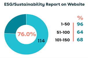 Of the companies that published an ESG Report, 72.8 percent used the Sustainability Accounting Board Standards (SASB) for a framework. Approximately half of the companies also used the Global Reporting Initiative (GRI), Task Force on Climate-Related Financial Disclosure (TCFD) and United Nations Sustainable Development Goals (UNSDGs).
